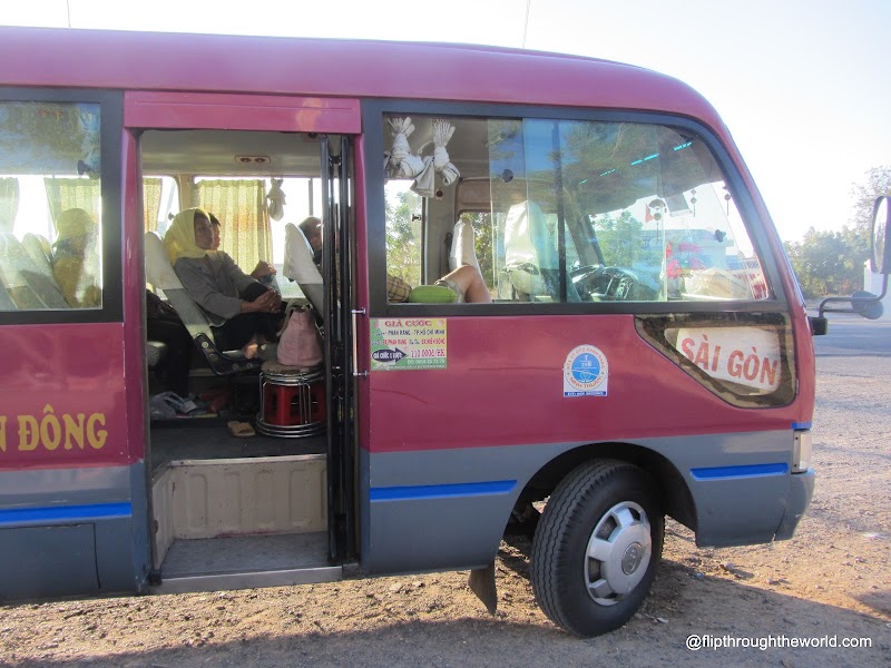 Dopo circa due ore (sono le 2 di notte) i tipi tornano dalla loro infruttuosa caccia al bus per Saigon e decidono di ripartire. Il bus riparte magicamente e continuiamo verso Saigon.Siamo stanchi, dormiamo qualche ora e veniamo svegliati dai tipi che dicono di essere in una stazione per autobus e che ci pagheranno un bus fino a saigon da li. Siamo a Phan Rang dicono che mancano solo 4 ore a Saigon. Decidiamo di cambiare bus, non li sopportiamo più. Grosso errore perchè impiegheremo circa 10 ore per arrivare a Saigon con un minivan che si ferma ogni 10 minuti per la strada facendo salire gente di tutti i tipi con qualsiasi tipo di bagaglio e riempiendo anche gli spazi centrali del bus con delle seggioline su cui si “accomodano” i più sfortunati. Non gliela facciamo veramente più, siamo stremati, nel minibus fa caldo, si suda, puzza, ci sono vecchi e bambini che strillano.