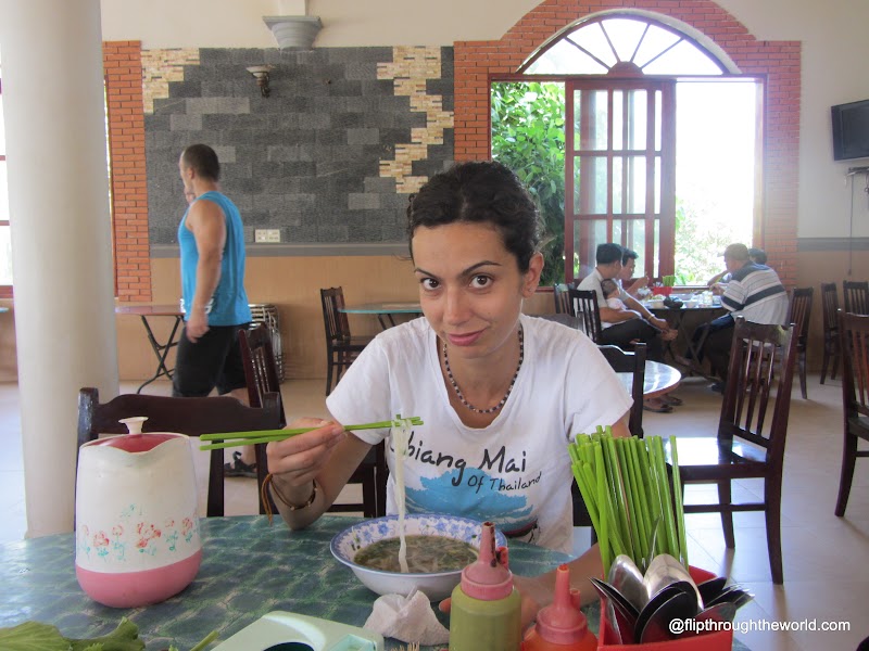 Ci fermiamo in un area di servizio per sciacquarci il viso e mangiare qualcosa. Optiamo per la zuppa di noodles (pho, da cui alcune magliette con la scritta i-pho), che è l’unica cosa che sembra commestibile e su cui non ci sono mosche poggiate.Contratto sul prezzo che viene sempre alzato per i turisti e mi viene accordato uno sconto (la tipa che da la puzza commenta “beautiful boy”, e questo sarà il nome della EffeMaschio per il resto del viaggio!) . Il fascino mediterraneo fa degenerare la situazione: quando il polacco lo sa decide di pagare lo stesso a sua volta, ma il proprietrio non la prende bene, va nel retro e prende due bottiglie di birra vuote, pensiamo che le voglia spaccare in testa al polacco che con tutta tranquillità attende che il tipo si avvicini per dargli un calcio volante in faccia. le donne provano a fermarlo, il tipo è indiavolato, strilla, il suo corpo è percosso da spasmi di nervoso, i bambini piangono. Attendiamo che da un momento all’altro esca qualcuno e ci dica “candid camera”, era tutto uno scherzo. Non accade, ma oramai la situazione non ci sembra più neanche strana, ci sembra quasi normale. Finiamo la nostra zuppa mentre il proprietario del locale prova a prendere ed a lanciare uno sgabello verso il polacco. Le donne riescono a fermarlo. Paghiamo (senza sconto!) ed usciamo, meglio ripartire 🙂