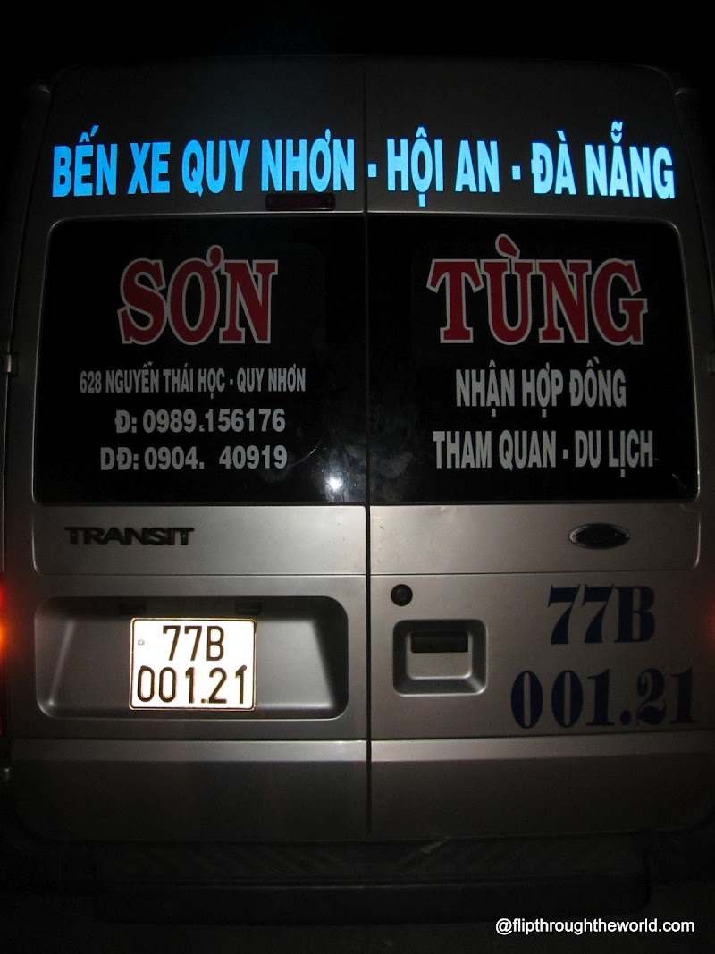 Dopo circa una mezzoretta, quando il minivan è bello pieno ci viene detto da una persona dello staff che parla inglese che ci vorranno circa 5 ore per raggiungere la città (Quy Nhon) in cui prenderemo lo “sleeping bus”, di rilassarci e goderci il viaggio. Il polacco seduto davanti a noi sullo sgabello non sa se lanciare lo sgabello verso il tipo oppure mantenere la pazienza e continuare il viaggio. Decide per la seconda opzione. Saranno gli ultimi contatti in Inglese con lo staff: il tipo scappa appena dato l’annuncio, in modo da evitare le nostre bestemmie. Lo staff è composto da un tipo smilzo alla guida ed un tutto fare che non appena caricato i bagagli decide che è il caso di farsi un pisolino proprio su di essi, si sposta quindi nel retro del minivan ed inizia a dormire steso sui bagagli.
