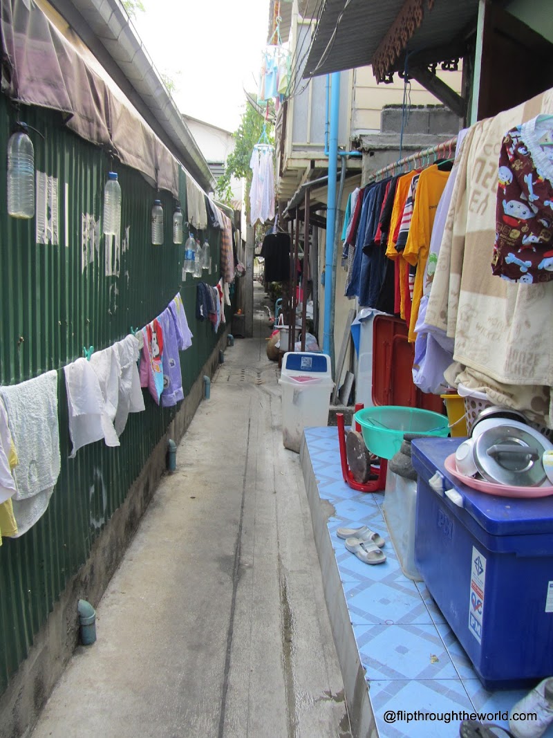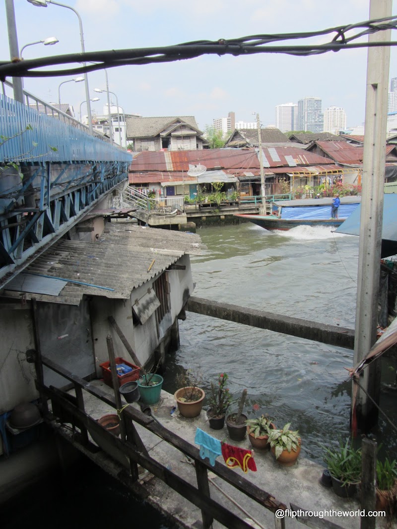 Sembra che esistano 2citta’: una e’ quella moderna dello Skyline e della metropolitana supermoderni e pulitissimi, l’altra e’ quella del fiume marrone e puzzolente, e delle baracche a ridosso di questo. E sembra che siano distanti tra loro anni luce…sembra che la modernita’ rifiuti quello che la citta e’ stata…e cosi la vecchia Bangkok sta li a marcire e putrefarsi.