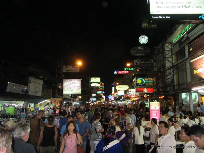 Passiamo per Khao San Road, e subito siamo felici di aver scelto di non dormirci…cosa e’, una succursale di Londra? Terribile, davvero, terribile…se cercate la Thailandia, statene alla larga. Se cercate fast food, bar e club con la musica alta, mercatini per backpacker, e’ il vostro regno. Disgusting.
