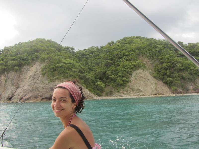 Le nuvole hanno continuato ad addensarsi, e si è alzato il vento. E tutti sulla barca l’abbiamo presa sul ridere “Vamos a bailar”, abbiamo cominciato a dire dopo i primi tonfi fra un’onda e l’altra. “Manos arriba”, come se fossimo sul tagadà. Poi sono cominciate le risate isteriche, esattamente al comparire della smorfia preoccupata sulla faccia del capitano quando ha realizzato che le nuvole non erano così distanti, e nemmeno la pioggia. Che pioggia da queste aprti non è quella leggera di Londra. No. E’ una bacinella da 100 litri che ti si rovescia sulla testa nel giro di 30 secondi. E’ tanta roba, diciamo.